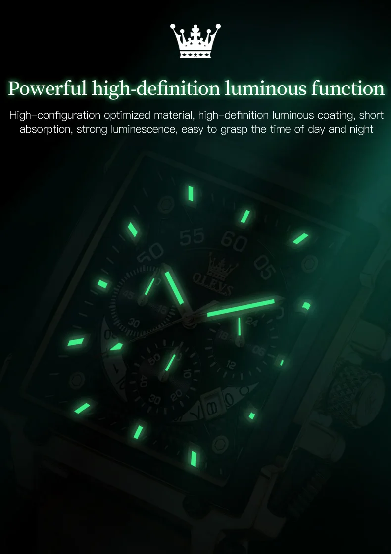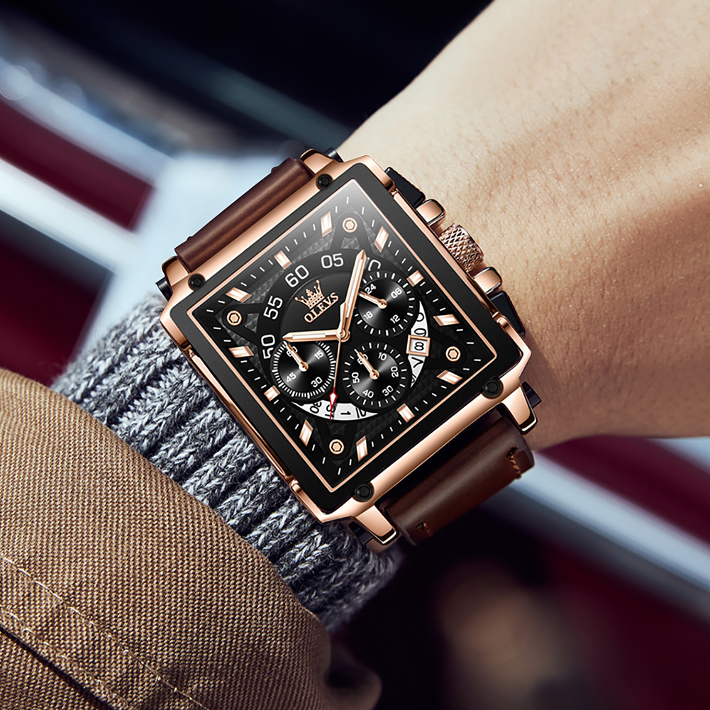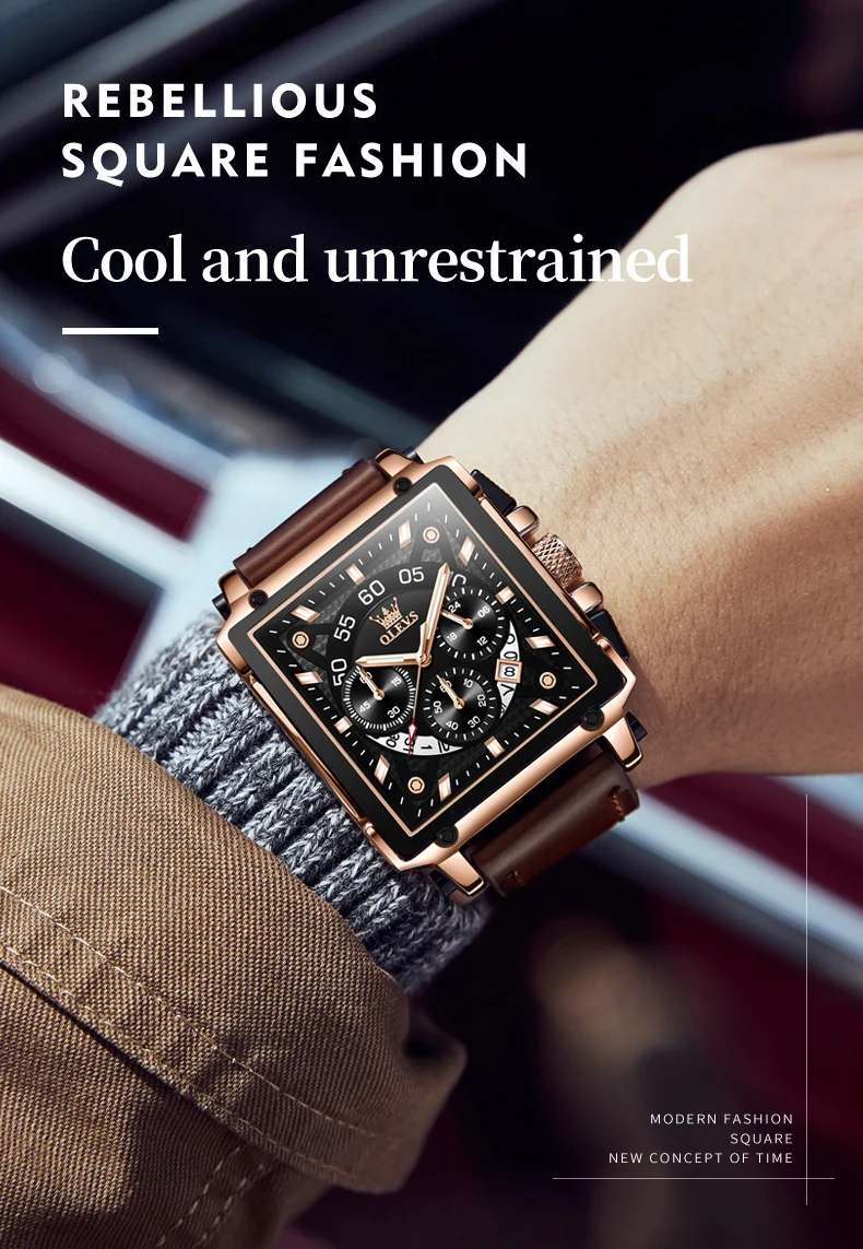 To start using the OLEVS Top Brand Men’s Watches Luxury Square Quartz Wrist Watch, simply wind the watch and set the time. Once the time is set, you can use the chronograph feature to track time in seconds. The luminous hands will also make it easy to read the time in dark environments.