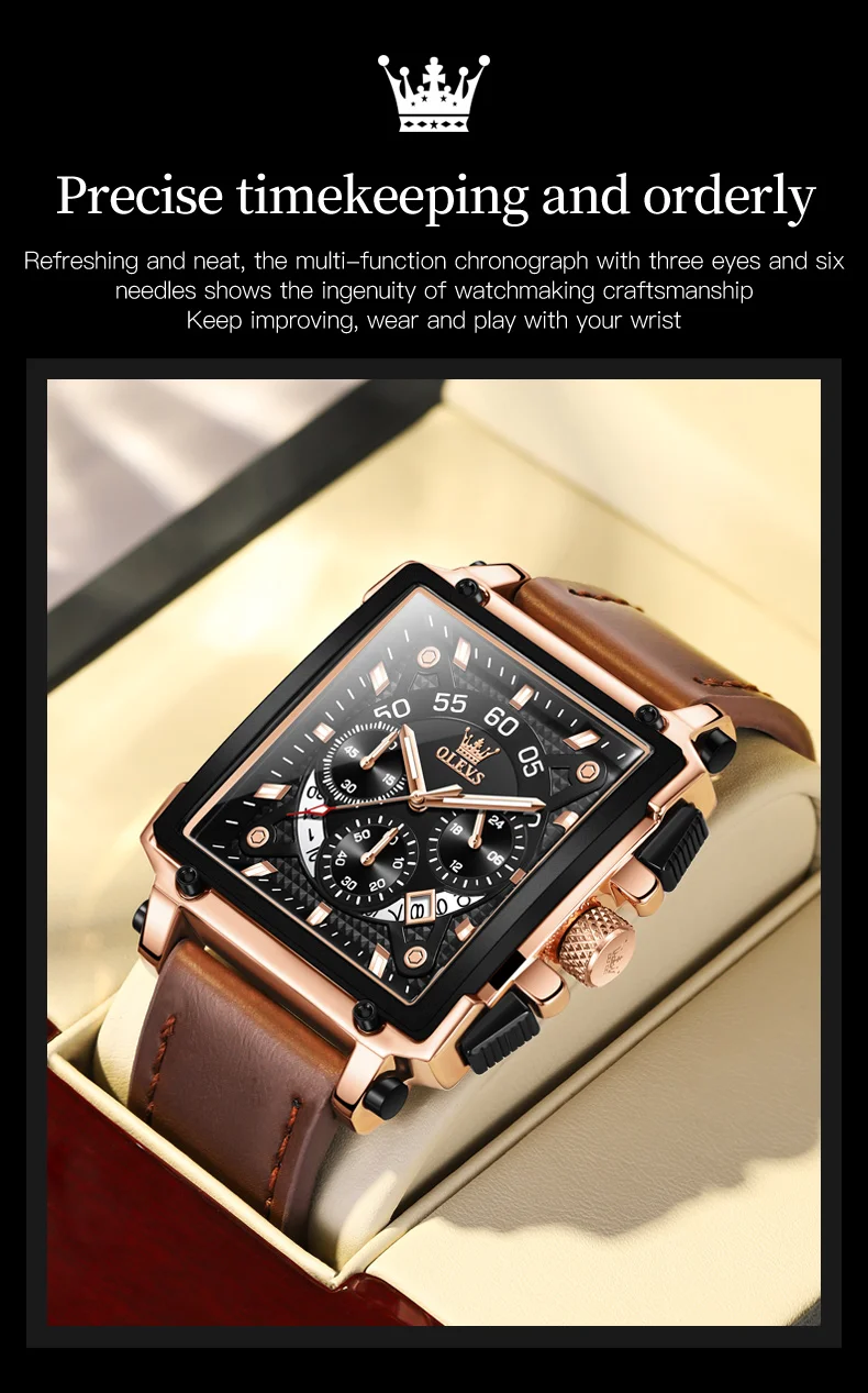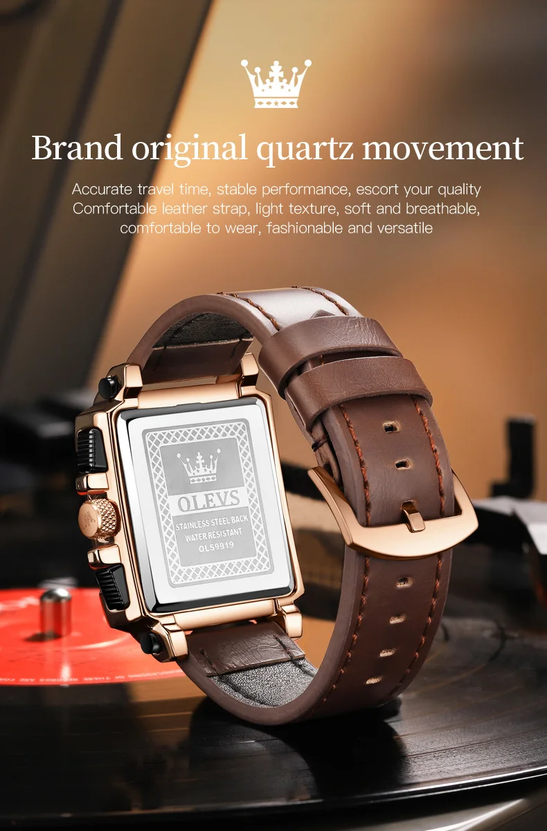 Shop the stylish OLEVS 9919 Square Quartz Watch with Leather Strap on benyar.us. Discover high-quality craftsmanship and precision timekeeping with this elegant timepiece. Order yours today!