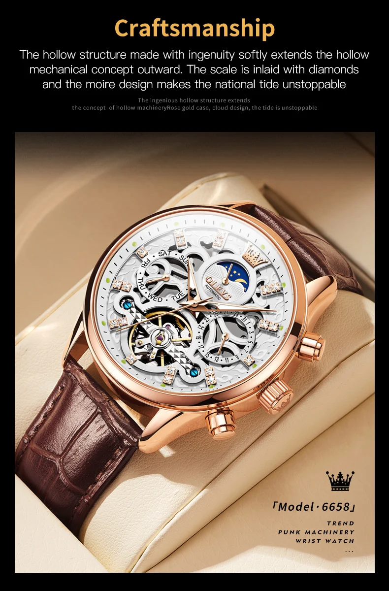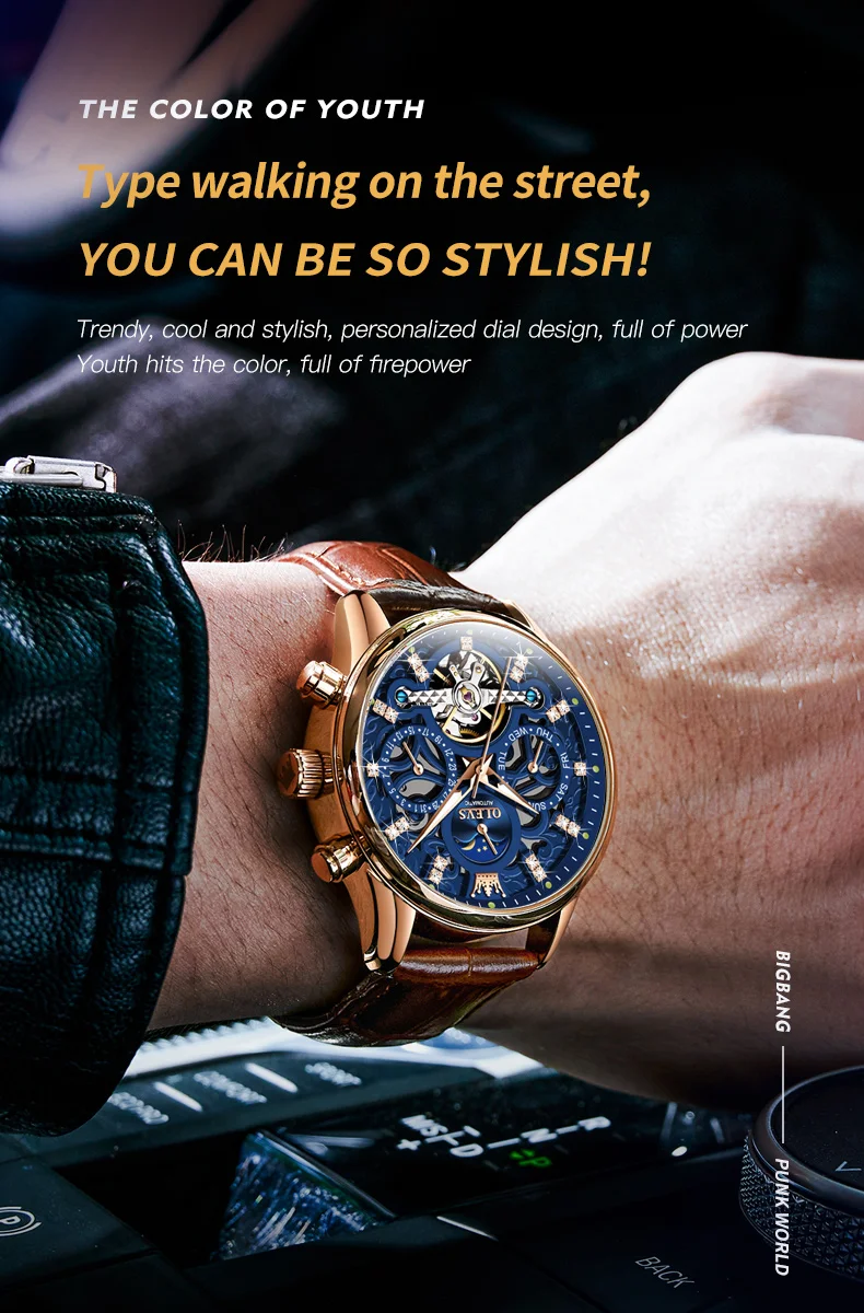 OLEVS Men’s Watches Fashion Skeleton Tourbillon