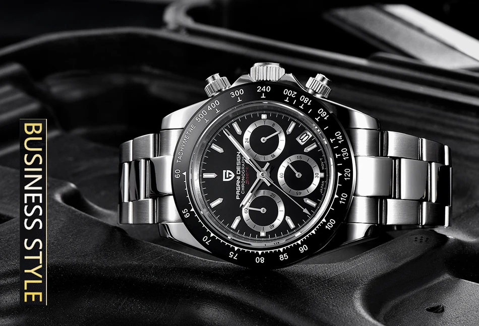 ⌚ Elevate your professional look with our Business Black Chronograph. Sleek design, accurate timekeeping, and water-resistant up to 10Bar. Get yours today!